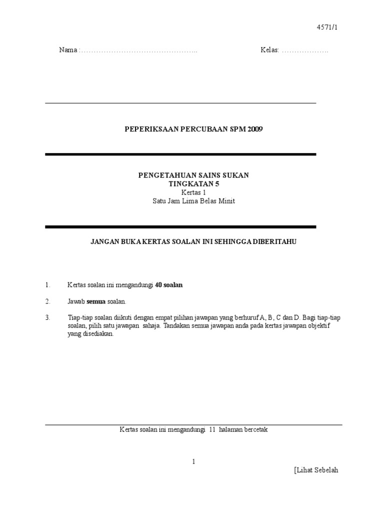 Contoh Soalan Sains Sukan Kertas 1